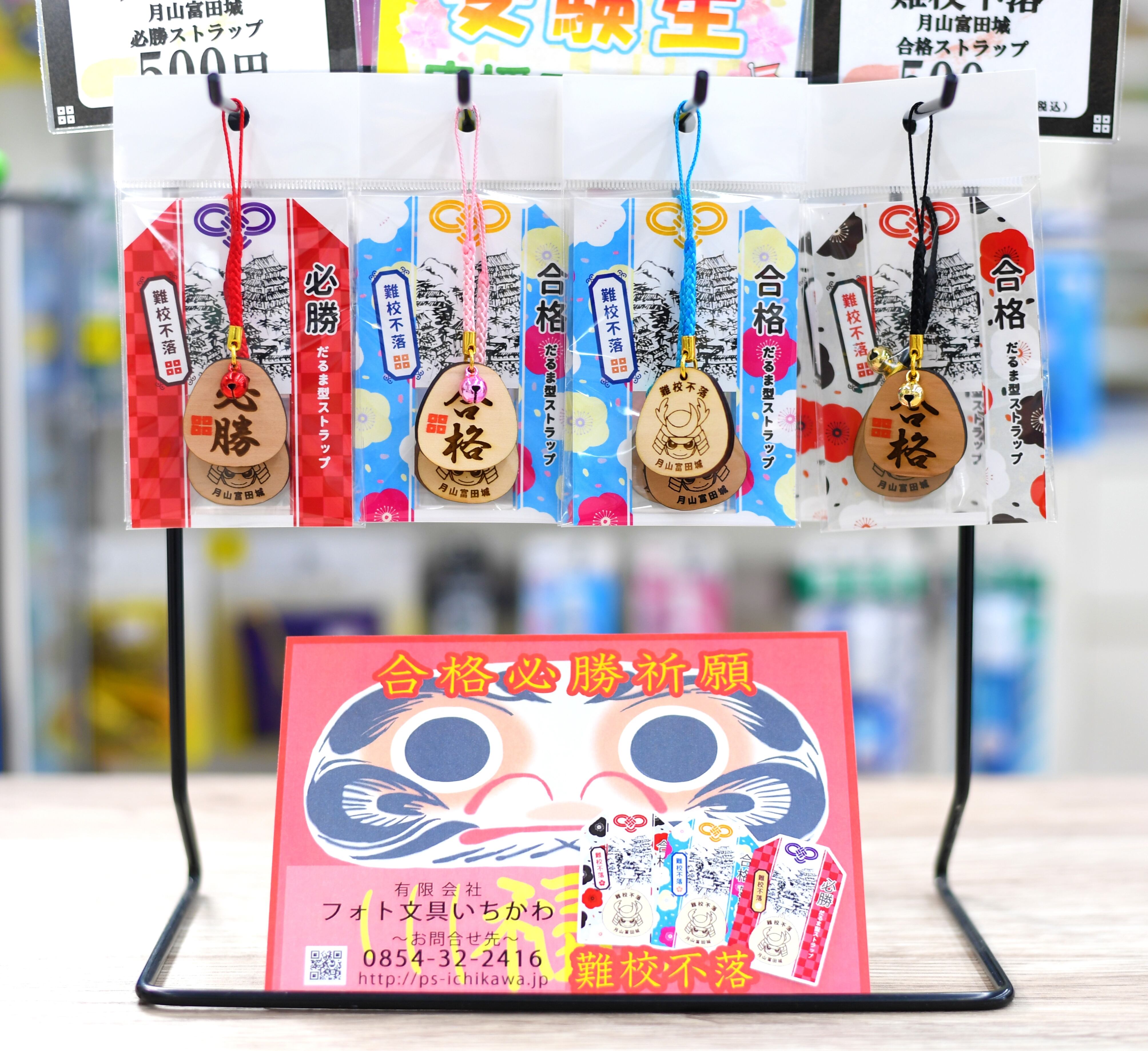 難校不落月山富田城合格必勝ストラップ 赤青黒桃 4色セット